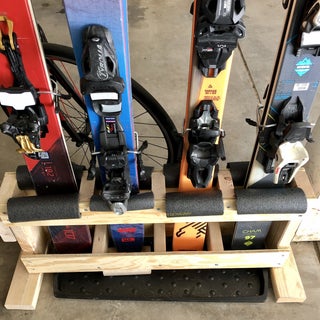 This project will help you organize your garage and provide a great place to store your skis. Wooden Rack for 4 pairs of cross countryskis and ski poles. Cut the plywood 4 inches wide by whatever length you needand how many sets of skis youre planning to hang.
